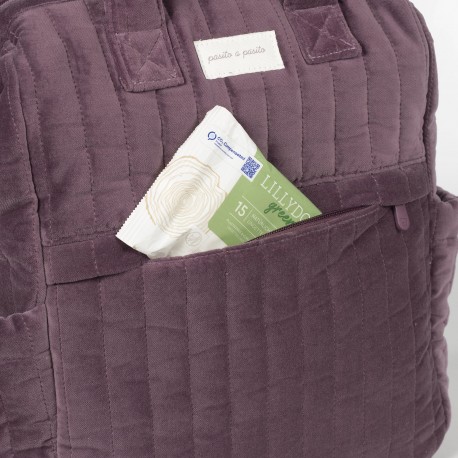 Descubre la mochila maternal Cherry Velvet de Pasito a Pasito, confeccionada en un tercipelo de algodón 100%. Su tratamiento waterproof la hace resistente al agua, garantizando protección y durabilidad en el día a día. Esta mochila ofrece gran capacidad y múltiples compartimentos, facilitando la organización de todo lo necesario para el bebé. Bolsillos interiores y exteriores para tenerlo todo a mano y en orden. También incorpora dos bolsillos laterales para botellas o biberones. Tiene 2 asas grandes ajustables para que puedas usarla colgada a la espalda, asas de mano y otras dos asas pequeñas para que puedas usarla colgada del carrito del bebé. Incluye un práctico cambiador portátil, permitiendo mayor comodidad en cualquier lugar. Perfecta para el uso diario, esta mochila de maternidad Pasito a Pasito combina estilo y funcionalidad, siendo un imprescindible para mamás que buscan calidad y diseño. Está fabricado con materiales de gran calidad, libres de colorantes azoicos, ftalatos y sustancias nocivas para la salud. Además, se puede lavar a mano o a máquina a temperaturas de hasta 30º. Los productos para bebé de Pasito a Pasito cuentan con un diseño muy diferente a todas las demás. Sus colecciones se caracterizan por el trabajo al detallada, pensadas siempre desde un punto de vista práctico. Utilizan materiales de primera calidad para remarcar la elegancia y la armonía en cada una de sus piezas. Nuestros modelos son exclusivos y de estilo inconfundible, pensados para madres actuales que gozan de buen gusto y que aprecian los detalles tanto como nosotros. Especificaciones: Materiales: 100% algodón. Medidas: 29X40X17 cm.