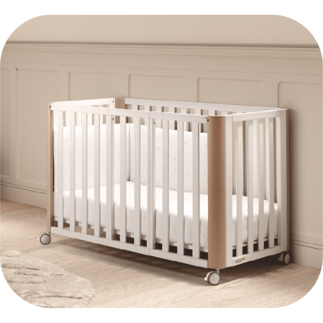 La cuna que se transforma y crece con tu bebé en cada etapa. Empieza como una minicuna de colecho ideal para los primeros días, se convierte en una cuna espaciosa de 120×60 cm y, más adelante, en una cama Montessori que acompaña sus primeros pasos hacia la libertad de tu pequeño.